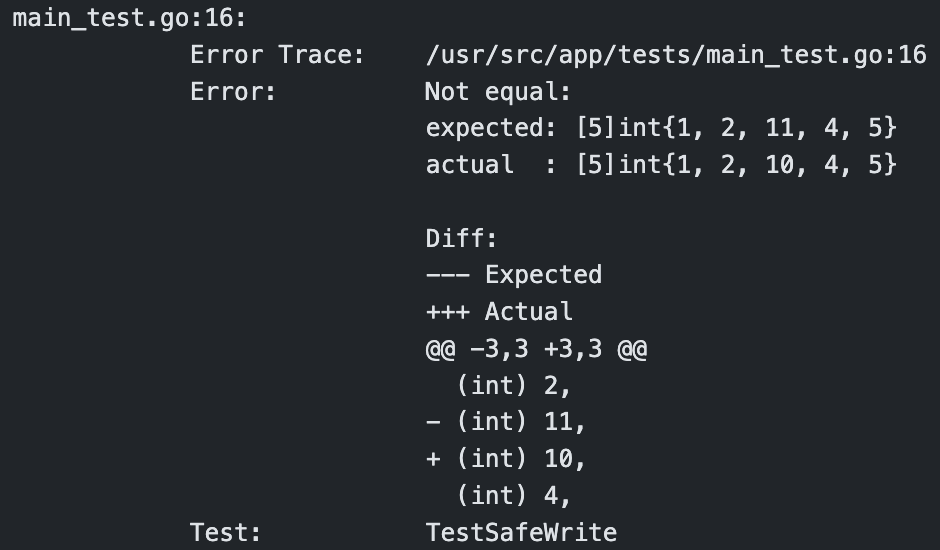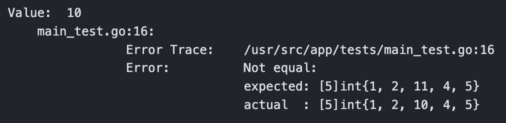 Изучив такой вывод, мы можем разобраться, чем вызвано несовпадение результатов. Это поможет устранить причину неправильной работы тестируемого кода.