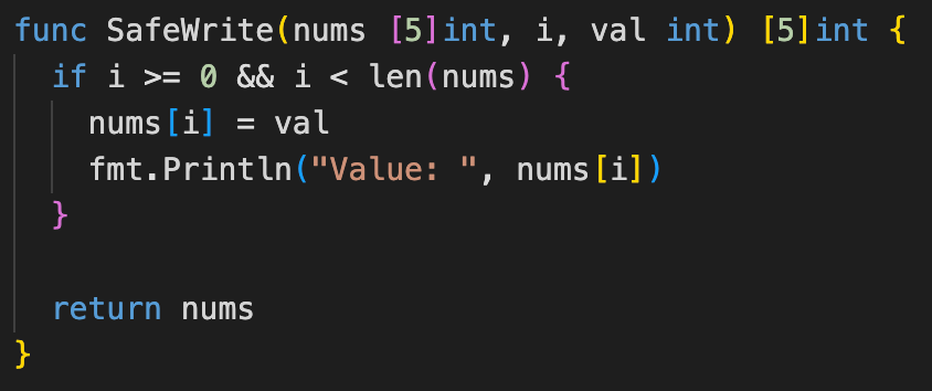 Если программа на Go написана синтаксически некорректно, то компилятор выводит на экран сообщение об ошибке.