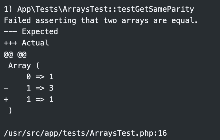 Он очень похож на предыдущий, но здесь сравниваются два массива. Ожидаемый и фактически полученный при вызове функции.