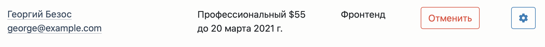 После оформления подписки в строке с именем сотрудника отобразится действующий план, его стоимость и срок действия. Подписка продлевается автоматически раз в месяц, в любой момент её можно отменить, доступ при этом останется до конца оплаченного периода.