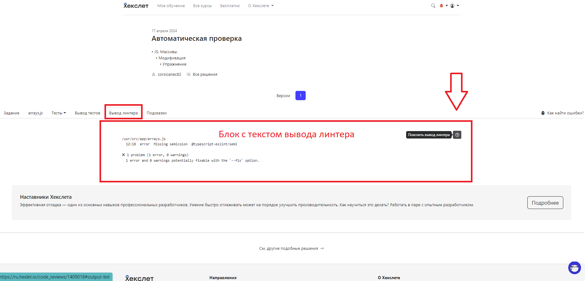 - Получить расшифровку вывода линтера по вашему решению, если в нём есть ошибки
