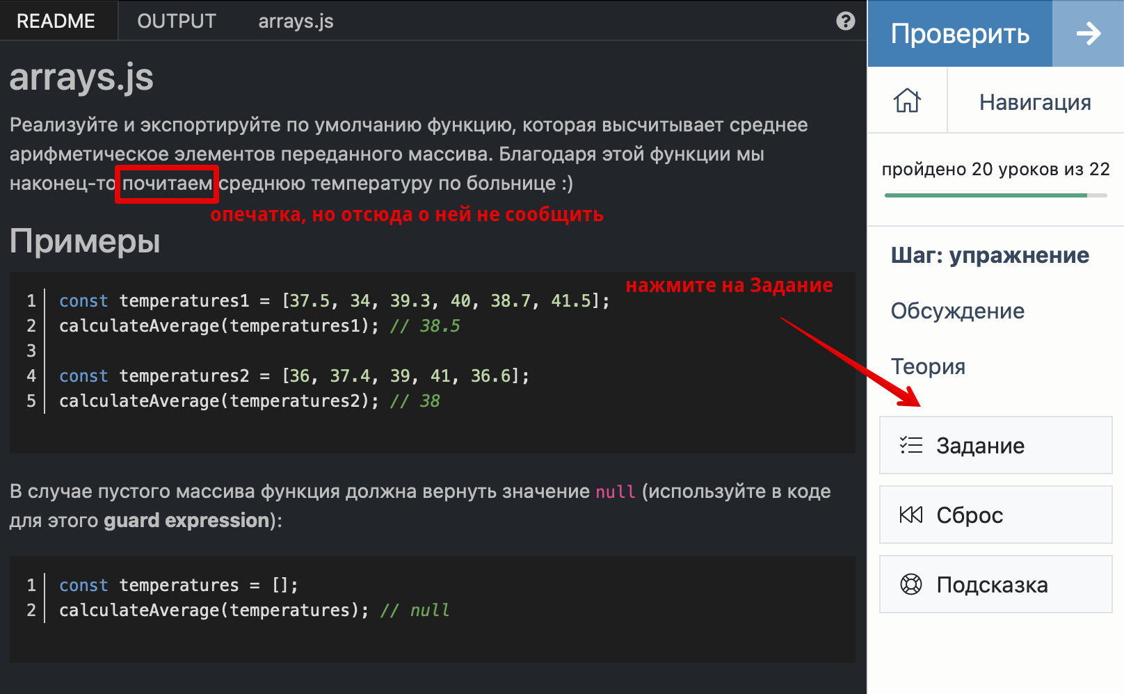 Сначала нажмите на кнопку «Задание» в правой части экрана